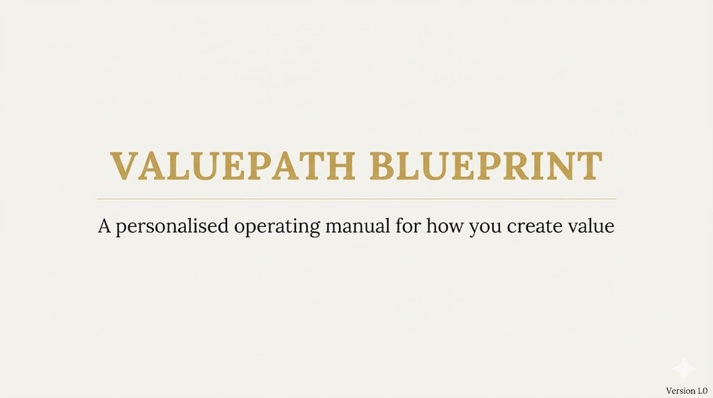 The ValuePath Blueprint is a personalised operating manual based on how you actually create value. It shows you where your effort produces leverage, where it gets wasted, and why certain paths feel harder for you than they do for others.